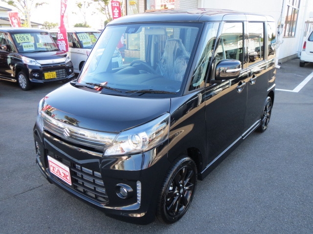 集中ドアロック スマートキー ディスチャージヘッドランプ 盗難防止装置 リアドア・電動スライドドア 両側パワースライドドア レーダーブレーキ シートヒーター ■セールスポイント■ スペーシアの最上級グレードです。専用15インチアルミホイール/専用ヘッドランプ&グリル/LEDイルミ(Fバンパー)/本革巻ステアリングホイール/ピアノブラック調の高級内装/ステアリングオーディオスイッチ/6スピーカーシステム/オートライト・HID /ウインカー付電動格納ミラー。中が広くてシートを自由自在に倒したり、リアシートも前後できるので、自転車や大きい荷物を楽に積めたり、レジャー等で着替えるスペースをつくれたりできるのが良いです。後席の足元が広い。乗り込む時にも身体を曲げなくていいので楽です。ティッシュを綺麗にしまえる収納、助手席下のBOX、たくさんの小物入れ・フック、後ろの席のロールサンシェード、細かな装備に気を配ってあります。 | |